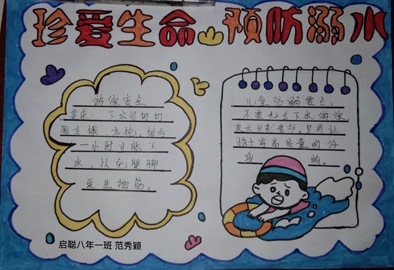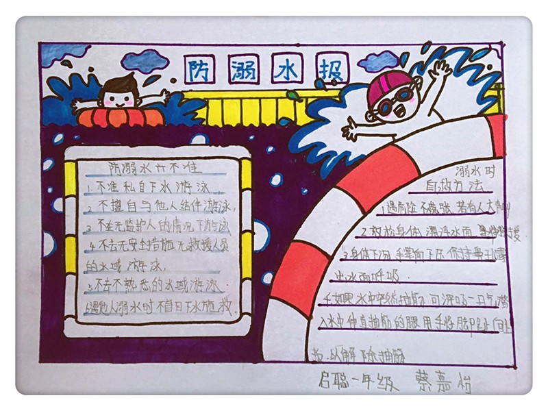 学生们还将在这段时间学到的防溺水知识用手抄报的形式展示出来,牢记防溺水“六不一会”要求,提高安全防范意识。